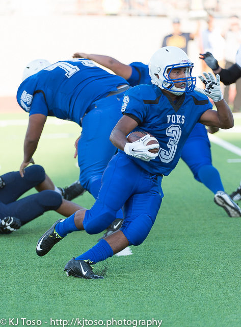 While Esquivel made his first start under center, Julian Castillo (84 yards, 23 carries) was called on to be the Voks’ workhouse back. Joe Orta, who led the team in rushing last year as a sophomore, did not play.
