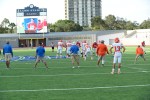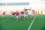 A wide-angle view between plays of the Jefferson-Laredo United scrimmage with the new Alamo Stadium video board in the background.