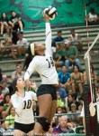 Jazmine Jackson, a powerful hitter for Highlands, goes up to punch one of her 8 kills.